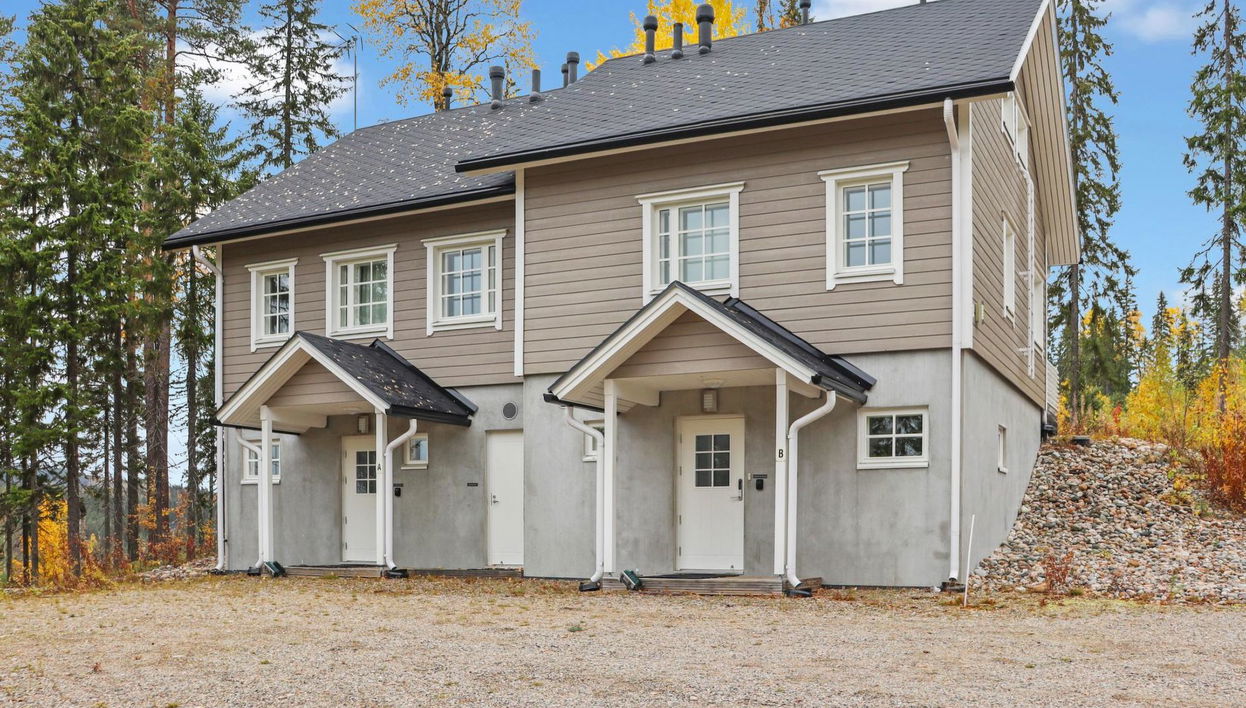 Casa adosada situada en el centro turístico de Ukkohalla, 75 m2 + buhardilla 18 m2, para 5 personas, construida en 2015. Entrada desde la planta baja de la cabaña, donde están el salón y la sauna. En la planta intermedia están la cocina-salón y un dormitorio. 2 WC, uno de ellos en la planta baja y el segundo en la planta media. La cabaña tiene un cuarto de secado. Cuarto de encerado y depósito para 2 cabañas. Vista a las pistas. Camas: en el dormitorio una cama doble y en la buhardilla 3 camas. Leña está incluida en el precio. Cocina, 3 dormitorios (uno en la buhardilla), vestíbulo de la buhardilla, sauna, cuarto de ducha, 2 WC separados, vestidor, vestíbulo, terraza, depósito, chimenea y leña. 2 dormitorios con 2 camas de 80cm/habitación, una cama doble en uno de los dormitorios, un sofá-cama + 2 colchones de repuesto en la buhardilla. Ukkohalla: Centro turístico situado junto al lago Syväjärvi, con centro de información, tienda, restaurante, spa, centro de pistas, senderos para motonieves, pistas de esquí, servicios programados, Cable Wakeboard, playa (más información en www.ukkohalla.fi). Los servicios de Ukkohalla a 0,1 km de distancia. Aeropuerto Kajaani a 86 km, Oulu a 170 km, Helsinki a 650 km, parada de autobús Hyrynsalmi a 18 km, estación de tren Kontiomäki a 66 km. Mascotas prohibidas en la planta baja. Vista a las pistas. La cabaña está disponible desde las 16.00 horas del día de llegada - hasta las 12.00 horas del día de salida. LIMPIEZA FINAL ESTÁ INCLUIDA EN EL PRECIO. ROPA DE CAMA 15€/PERSONA ES OBLIGATORIA PARA LA RESERVA.