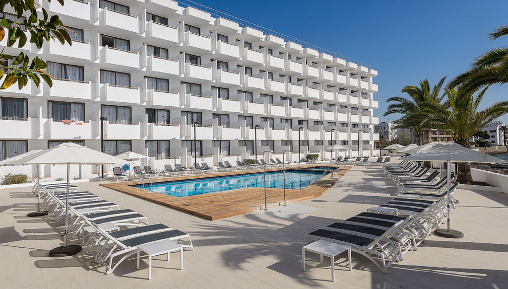 El aparthotel está situado en primera línea de mar. Su situación es privilegiada ya que se encuentra entre Playa d’en Bossa y el centro de la ciudad lo
