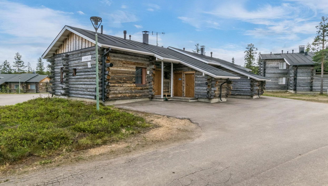 El apartamento adosado Lumikelo B4 ofrece un acogedor alojamiento en una cabaña en el centro de Saariselkä. El espacioso apartamento combina el estilo tradicional de las cabañas de troncos plateados con las comodidades modernas.