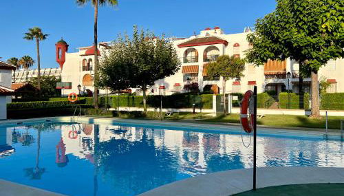 Apartamento en Islantilla playa con 2 terrazas y WIFI FIBRA, que cuenta con piscina de temporada al aire libre, jardín y salón de uso común, ofrece alojamiento en Islantilla con wifi gratis y vistas a la piscina.