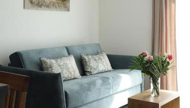 El apartamento de 1 dormitorio tiene sala de estar con TV, cocina totalmente equipada con lavavajillas y horno, y 1 baño con ducha.