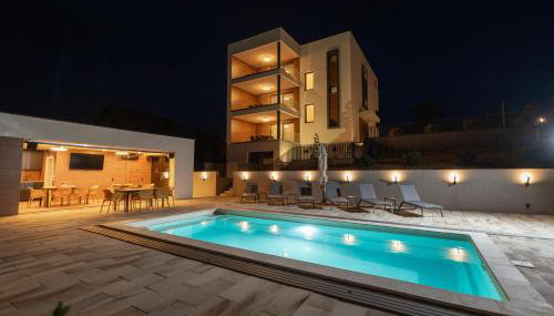 Luxury apartments Villa Wood NEW está en Šumećani, a 46 km de Zoo de Zagreb y a 49 km de Parque Maksimir, y ofrece alojamiento con wifi gratis, jardín con piscina al aire libre, vistas al jardín y acceso a la sauna y a la bañera de hidromasaje.
