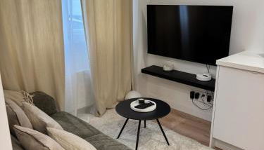 Este apartamento tiene 1 dormitorio, cocina con nevera y microondas, TV de pantalla plana, zona de estar y 1 baño con ducha.