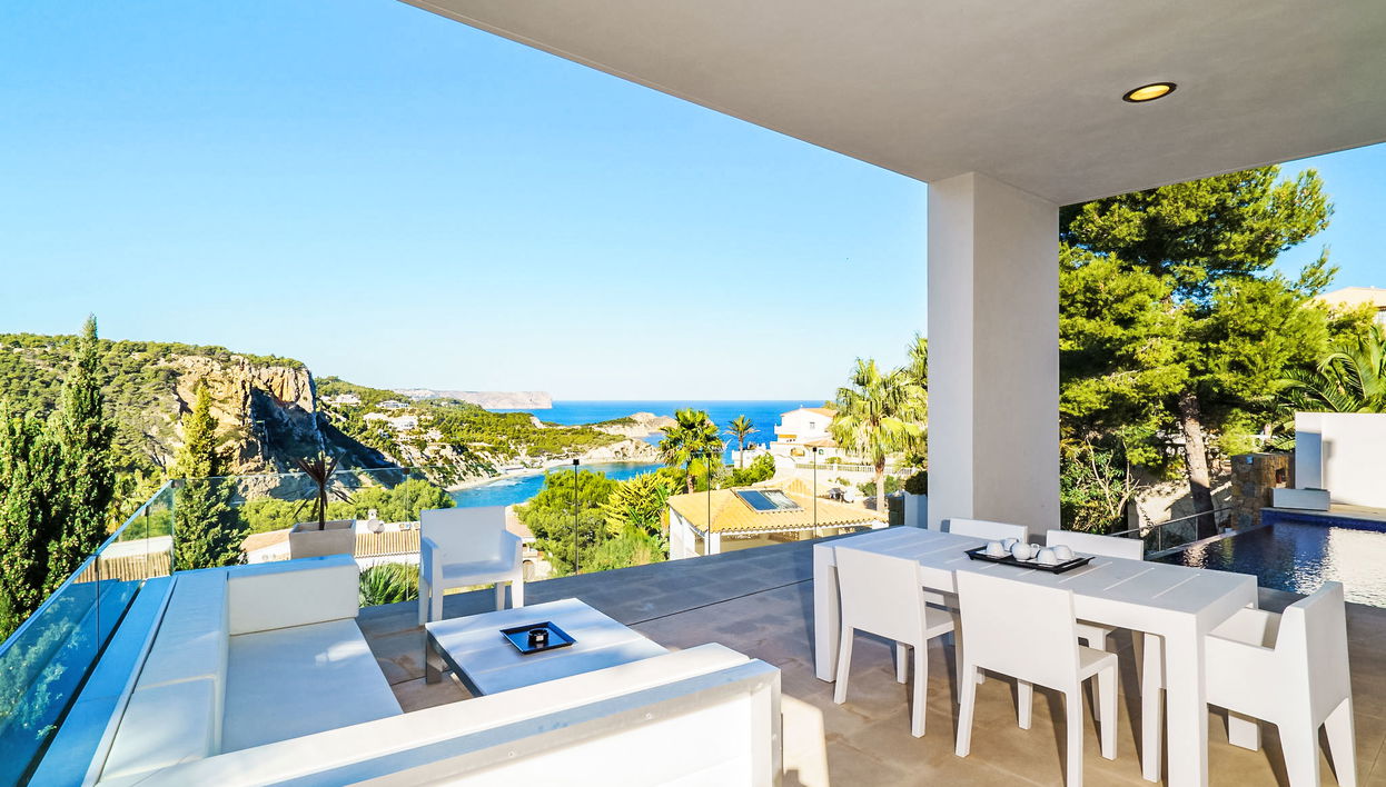 Villa "Solymar", moderna, lujosa de 3 plantas. En el barrio de Balcón al Mar, lugar tranquilo, soleado, a 5 km del mar. Privado: jardín 800 m2 (vallado) con plantas, piscina (4 x 8 m, Disponible por temporada: 01.Ene. - 31.Dic.) con escalera interior. Ducha/WC en zona de piscina. Supermercado 6 km, restaurante 1.3 km, parada autobús 8 km, playa de arena "Arenal" 8 km, playa rocosa "Granadella" 5 km. Grupos de jóvenes sólo bajo petición.