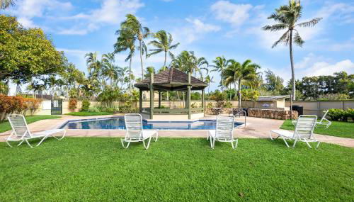 Pulelehua Kuilima Estates West #142 está en Kahuku, a 8 km de Banzai Pipeline y a 11 km de Polynesian Cultural Center, en una zona donde se puede practicar ciclismo.