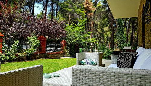 Wood and Stone Villa, que cuenta con vistas a la montaña, dispone de alojamiento con terraza y balcón a unos 42 km de Museo Antropológico y cueva de Petralona. El alojamiento, que se encuentra a 18 min a pie de Playa del Sani Club, ofrece jardín y parking privado gratis.
