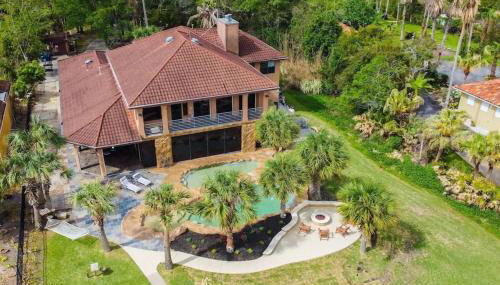 Bay Breeze Estate - Heated Pools, Private Pier & Walk to the Kemah Boardwalk, que cuenta con piscina al aire libre, jardín y terraza, ofrece alojamiento en Kemah con wifi gratis y vistas al mar. Este alojamiento ofrece mesa de billar, dardos y parking privado gratis.