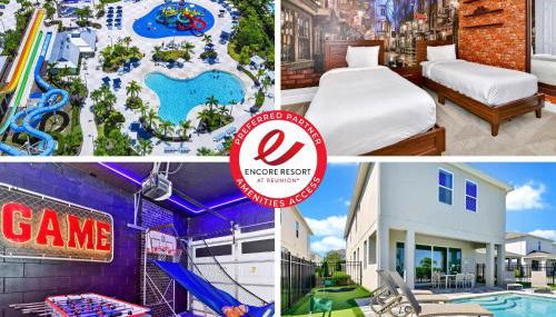 Modern Home Near Disney With Private Pool, Media, Game & Themed Rooms With Waterpark & Resort Access At Encore Resorts Reunion - 384Sf está a solo 18 km de Florida Mall y dispone de alojamiento en Kissimmee con restaurante y bar, además de servicio de habitaciones. Este alojamiento con aire acondicionado está a 7,3 km de Gatorland y ofrece wifi gratis y parking privado en el propio alojamiento.