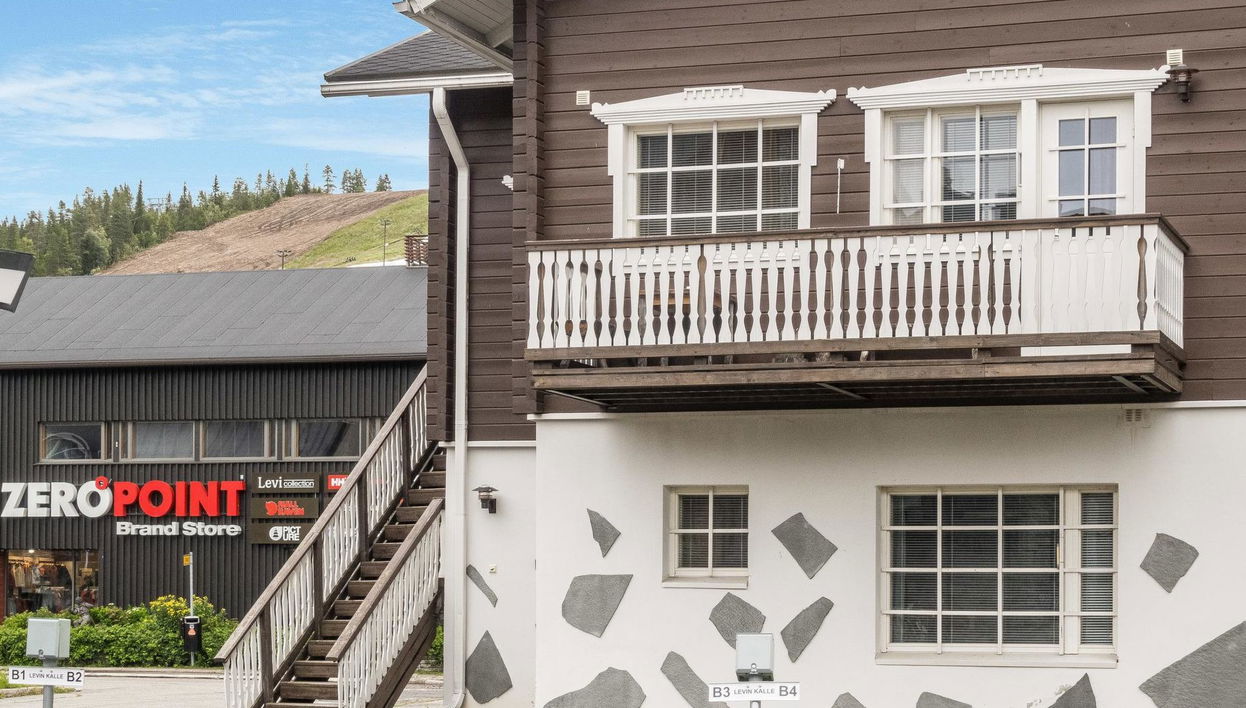 170 km al norte de Rovaniemi, en el corazón del centro turístico de Levi, al lado de la pista de esquí. Apartamento en la planta baja de la casa de estilo alpino, hecha de piedra/madera, construida en 1998. Salón-cocina con sofá (cama extra), 2 dormitorios, ambos con 2 camas. Sauna (estufa eléctrica) y baño, WC separado y pasillo. Apartamento está ubicado justo en el centro de Levi. Estación de telesquí de la pista Front está situada al otro lado de la carretera. Varios restaurantes, spa, hoteles y tiendas están cerca, Capilla de Santa María al otro lado de la calle.