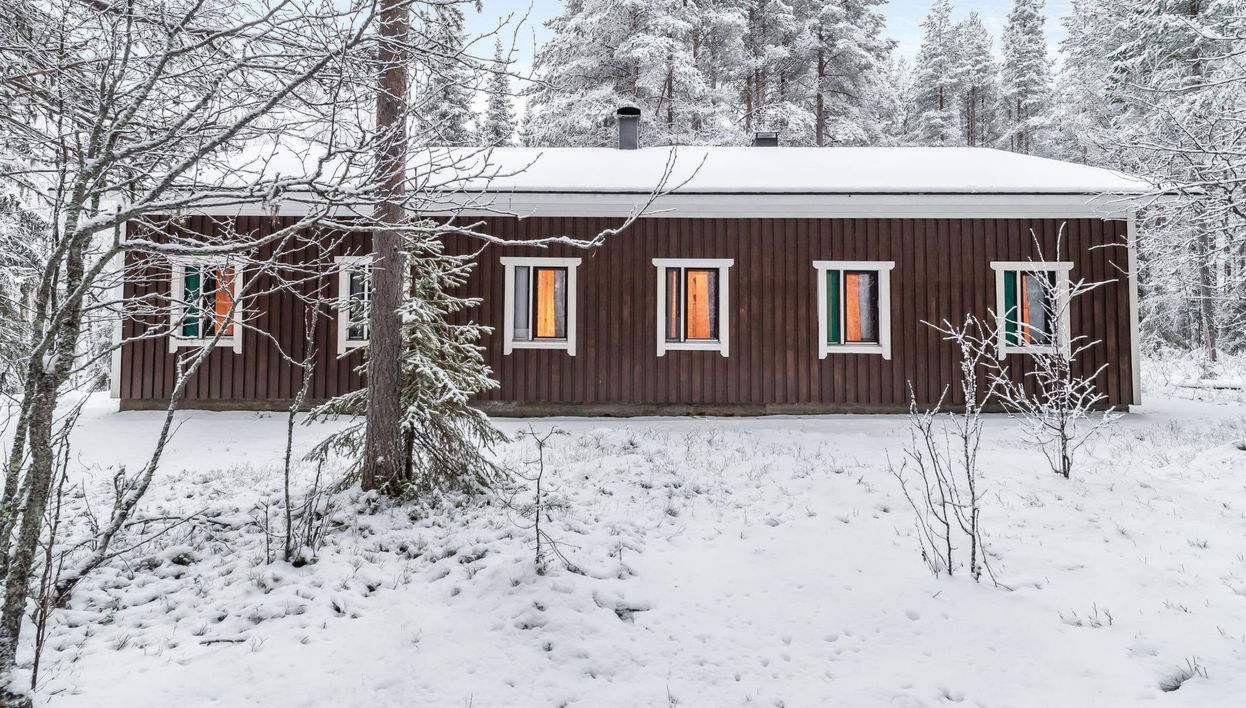 Cabaña individual de madera ubicada 40 km al norte de Kolari en la zona central de Äkäslompolo, construida en 1975. Salón-cocina, cinco dormitorios para dos personas cada uno, un dormitorio individual, todas las camas son individuales.