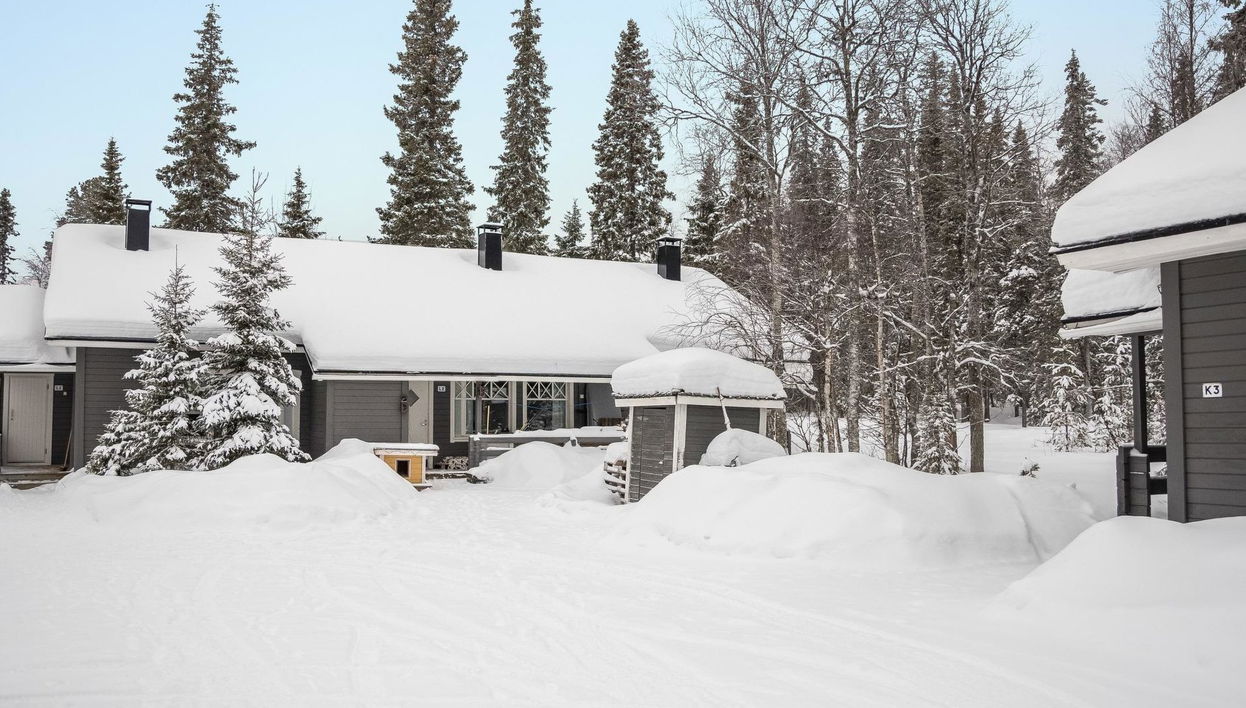 Apartamento en casa adosada ubicada 165 km al norte de Rovaniemi, en el pueblo Ylläsjärvi, cerca de una nueva carretera pintoresca. Construida en 1989. Combinado salón-cocina, dormitorio 2 camas, buhardilla (12 m²) con 2 camas y una cama doble, sauna eléctrica, baño, WC.