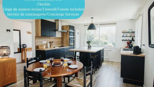 La Delphinière: Bord de Mer, Equipements de qualité, que cuenta con vistas al jardín, dispone de alojamiento con balcón y cafetera, y está a unos 12 km de Cité de la Mer. El alojamiento, que se encuentra a 2,8 km de Plage de Querqueville, ofrece jardín y parking privado gratis.