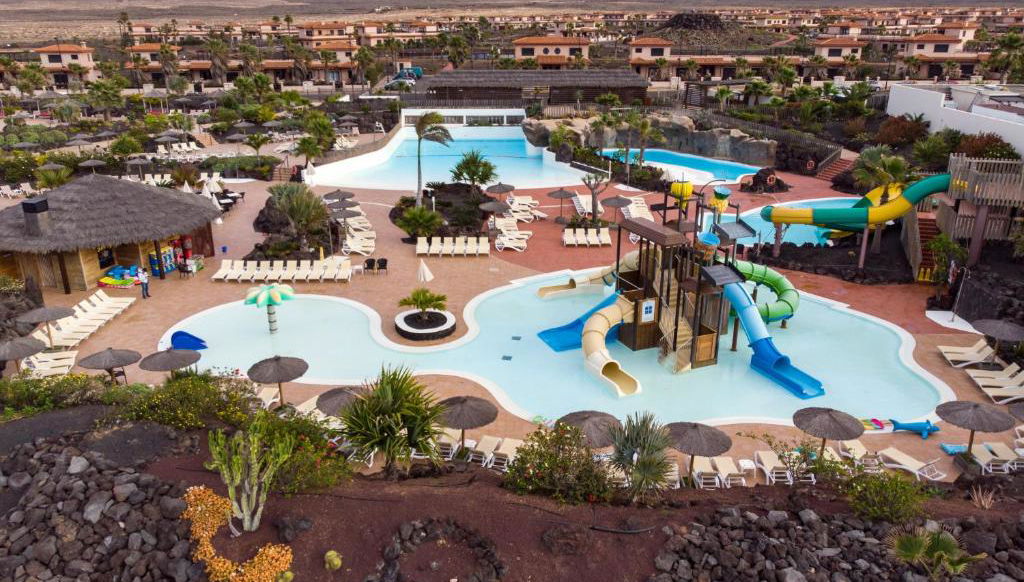 Este gran complejo vacacional está ubicado en la punta norte de la isla de Fuerteventura, a 1 km de la playa de Majanicho, cuenta con 11 piscinas, un parque acuático privado, y varios restaurantes.