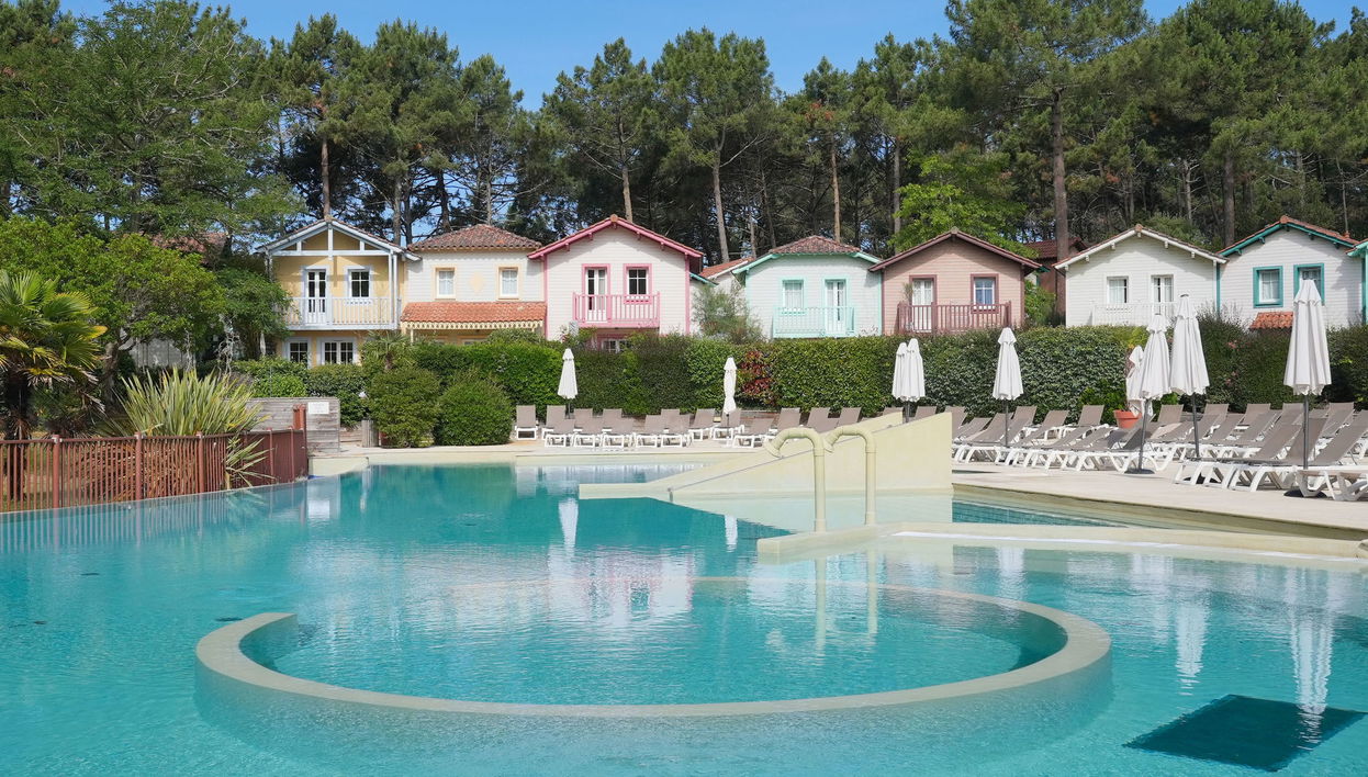 Pueblo vacacional "Domaine Golf Resort", rodeada de árboles. En la localidad, a 2 km del centro de Lacanau ocean, a 2 km del mar, a 3 km de un lago, a 2 km de la playa, en campo de golf. Comunitario: piscina vallada (400 m2, Disponible por temporada: 15.May. - 15.Sep. horario piscina: 10:00-19:45). Piscina para niños, tenis de mesa, básquet, petanca, campo de voleibol, parque infantil. En el complejo: recepción, lavandería (uso comunitario, extra), alquiler de bicicletas. Servicio a domicilio de panecillos y servicio a domicilio de bebidas. Aparcamiento. Tienda 2 km, supermercado 2 km, alquiler de bicicletas 300 m, parada autobús "Marie Curie" 1.7 km, playa de arena "Plage des Ecureuils" 4 km, lago Du Moutchic 6 km. Campo de golf (18 hoyos) 500 m, escuela de surf 2 km, tenis, centro ecuestre 12 km, caminos para bicicletas 200 m. Atracciones en los alrededores: Bordeaux 60 km, Saint Emilion 60 km, Dune du Pyla 60 km.