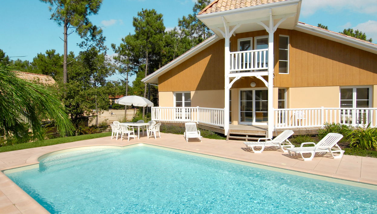 Resort "Eden Club". 20 casas en el complejo. A 2.5 km del centro de Lacanau-Océan, a 12 km del centro de Lacanau, a 58 km del centro de Bordeaux, a 2.5 km del mar. Comunitario: terreno 2 ha con árboles. Privado: terreno en estado natural 500 m2, piscina (8 x 4 m, Disponible por temporada: 15.Abr. - 15.Oct.) con escalera interior. Terraza. Acceso brusco durante 20 m hasta la casa (camino de tierra). Aparcamiento (para 2 coches). Tienda 2.5 km, parada autobús "Marie Curie" 2.6 km, playa de arena 2.5 km. Campo de golf (18 hoyos) 200 m, centro ecuestre 50 m. A tener en cuenta: La foto corresponde a una de las viviendas. Los alojamientos pueden diferir en la superficie habitable, la distribución de las estancias, el equipamiento y el mobiliario. Alquiler de un punto de acceso wifi móvil.