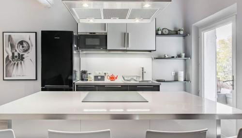 Este apartamento cuenta con 1 dormitorio, cocina con nevera y lavavajillas, TV de pantalla plana, zona de estar y 1 baño con ducha. Hay toallas y ropa de cama en el apartamento.