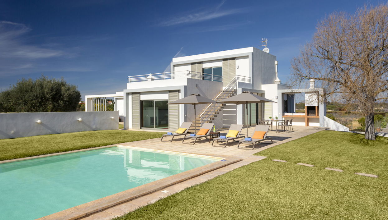 Villa "Almond Tree", muy bonita, agradable de 2 plantas, individual, rodeada de árboles y campos. En las afueras de la localidad, a 3.4 km del centro de Armação de Pera, lugar tranquilo area residencial (villas), a 1.3 km del mar. Privado: terreno en estado natural 2'520 m2 (vallada) con césped y plantas, bonito jardín para relajarse, piscina rectangular (5 x 12 m, 100 - 200 cm de profundidad, Disponible por temporada: 01.Ene. - 31.Dic.) con sistema de limpieza por electrolysis de sal. Ducha exterior, terraza, muebles de jardín, barbacoa (columpio), mantenimiento de la piscina a través del propietario/jardinero. En el inmueble: Wifi, billar, aire acondicionado. Aparcamiento (para 4 coches). Tienda de comestibles 800 m, supermercado 1.1 km, centro comercial 13 km, restaurante 650 m, bar 850 m, panadería 1.1 km, café 800 m, zona peatonal 2.6 km, a 40 minutos del centro andando, parada autobús "Estrada Armação De Pera" 1.2 km, estación de tren "Alcantarilha" 12.3 km, playa de arena "Praia da Nossa Senhora da Rocha" 1.3 km, playa rocosa "Praia da Cova Redonda" 1.3 km, centro de buceo 3.4 km. Puerto para yates 13.9 km, campo de golf (18 hoyos) 9.5 km, escuela de surf 3.8 km, pista de tenis cubierta 16.6 km, minigolf 1.5 km, centro ecuestre 1.3 km, polideportivo 16.2 km. Atracciones en los alrededores: Zoomarine 8.5 km, Algarve Shopping 11.5 km, Slide & Splash 9.5 km, Albufeira 17 km, Castelo de Silves 17.8 km, Krazy World 16.5 km. Zona de senderismo Monchique Passeios na Serra 40.1 km. A tener en cuenta: coche recomendable. Vivienda adecuada para 12 adultos. El propietario no acepta grupos de adolescentes/jóvenes. Carga y descarga de equipaje posible en la casa de vacaciones. Pequeño campo de fútbol en el terreno de la casa para divertirse en familia.