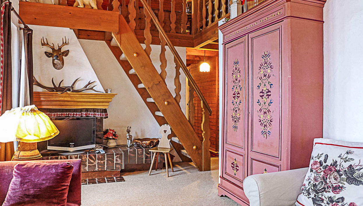 "Biwak", apartamento de 4 estancias 90 m2 en 2 plantas en el 1° piso. Luminoso, parcialmente abuhardillado, con mobiliario agradable y con mucha madera: salón-comedor 23 m2, altura de techo 230 - 420 cm con TV cable. Salida al balcón. 1 dorm. 12 m2 con 1 cama doble (1 x 160 cm, 200 cm de longitud). 1 dorm. 12 m2 con 2 camas (90 cm, 190 cm de longitud). Pequeña cocina (horno, lavavajillas, 4 placas de vitrocerámica, tostadora, hervidor de agua eléctrico, cafetera eléctrica, Cápsulas de café (Nespresso) extra). Baño/WC, WC separado. Planta superior: (escalera empinada) altillo 25 m2, sin armario con 3 camas (90 cm, 190 cm de longitud). Balcón grande. Muebles de balcón. Vista panorámica espléndida a las montañas y al valle. El alojamiento dispone de: Internet (Wifi, gratis). A tener en cuenta: adecuado para familias. Apartamento para no fumadores. En lugar de un dormitorio cerrado, algunos espacios para dormir están situados en una zona diáfana (galería, alcoba, etc.).