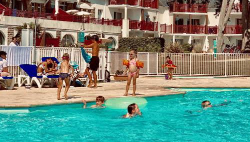Appartement dans résidence de standing avec terrasse et vue mer se encuentra en Le Pouliguen y ofrece un balcón con vistas a la piscina y al jardín, además de piscina de temporada al aire libre, sauna y bañera de hidromasaje. El apartamento, que cuenta con parking privado gratis, está en una zona en la que se pueden practicar actividades como ciclismo y ping pong.
