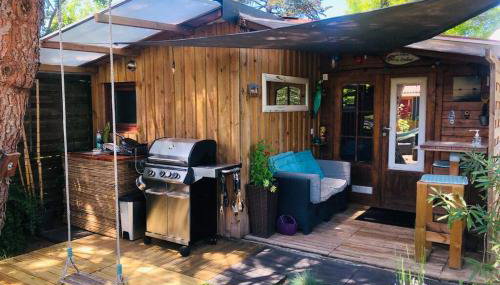 La cabane de Carol au coeur du bassin d'Arcachon, que cuenta con piscina de temporada al aire libre, jardín y terraza, ofrece alojamiento en Le Teich con wifi gratis y vistas al jardín.