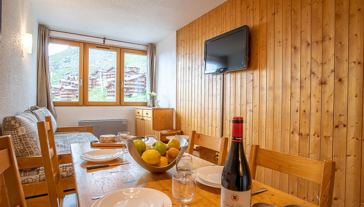 "Arcelle 614" estudio 24 m2 en el 6° piso, orientación norte. Con mobiliario muy confortable y agradable: salón-comedor con 1 cama-nido (2 pers. 2 x 80 cm, 190 cm de longitud), TV, pantalla plana y estufa eléctrica.