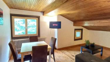 Logement mansardé dans maison avec jardin en bord de piste, vue montagne es un alojamiento con wifi gratis y vistas a la montaña que se encuentra en Les Houches. El alojamiento, que está a 22 km de Teleférico de Mont-Blanc, dispone de jardín y parking privado gratis.