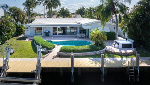 Waterfront Luxe 3BR, Pool, Hot Tub & Dock, que cuenta con piscina al aire libre, jardín y terraza, ofrece alojamiento en Lighthouse Point con wifi gratis y vistas al río. Este alojamiento ofrece piscina privada y parking privado gratis.
