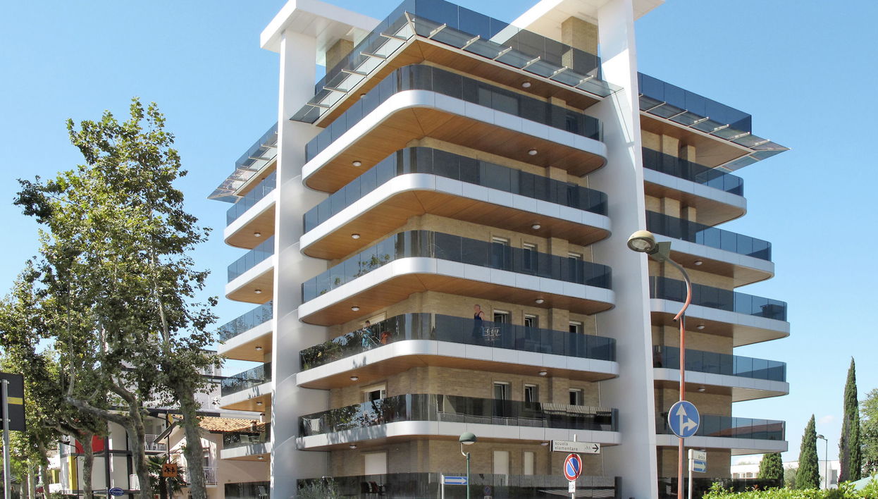 Casa de apartamentos "Residence Monica", bonito de 7 plantas. 16 apartamentos en la residencia. En el barrio de Lignano-Sabbiadoro, a 300 m del centro de Sabbiadoro, a 13 km del centro de Bibione, a 95 km del centro de Trieste, lugar céntrico, a 450 m del mar. Comunitario: terreno (vallado). En el inmueble: ascensor, alquiler de bicicletas. Supermercado 250 m, restaurante, zona peatonal 300 m, parada autobús 350 m, estación de tren "Latisana (Milano-Venezia-Triest)" 21 km, playa de arena 450 m, piscina termal "Bibione Thermae" 15 km. Puerto para yates 450 m, campo de golf (18 hoyos) 6 km. El propietario no acepta grupos de adolescentes/jóvenes.