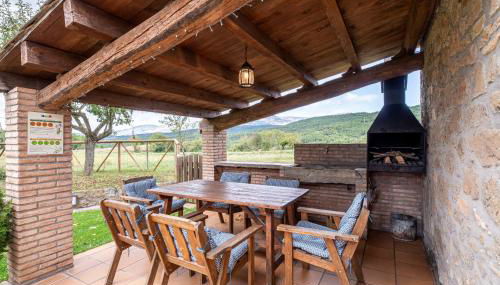 La casa rural cuenta con terraza y vistas a la montaña, y dispone de 3 dormitorios, una sala de estar, TV de pantalla plana, una cocina equipada con nevera y lavavajillas, y 3 baños con ducha. Hay toallas y ropa de cama en la casa rural.