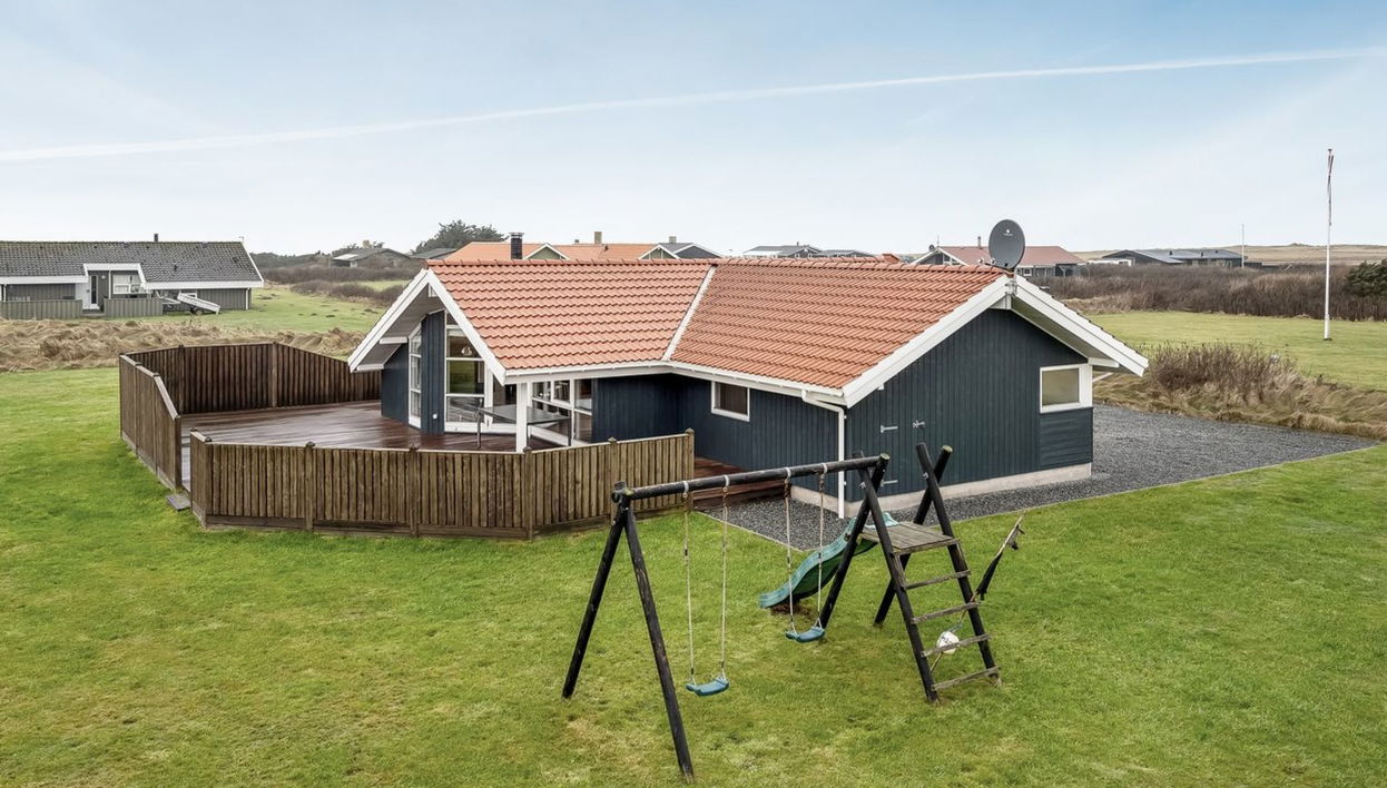Casa unifamiliar del año 2001. A 200 m del mar. Privado: terreno en estado natural 2'600 m2. Terraza (90 m2), parque infantil (tobogán, columpio). En el inmueble: sauna, lavadora. Aparcamiento junto a la casa. Tienda de comestibles 1 km. Campo de golf 2 km. El propietario no acepta grupos de adolescentes/jóvenes.