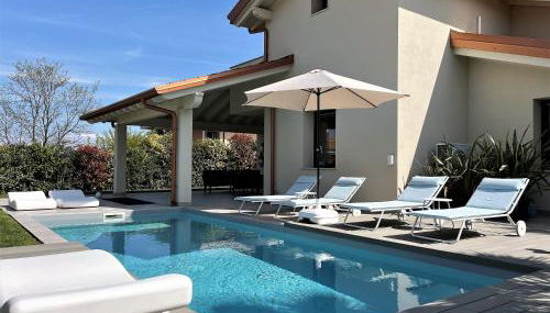 Ferienhaus Casa sulle colline di Barcuzzi pool, garden and barbecue, que tiene vistas a la piscina, dispone de alojamiento con balcón y cafetera, y está a unos 2,1 km de Lido di Lonato.