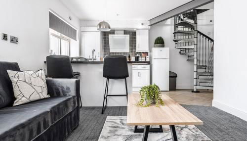 Modern unique duplex apartment in town centre está a 6 min a pie de Playa de St Annes y a 5,6 km de Parque temático Blackpool Pleasure Beach, y ofrece wifi gratis y terraza. Este apartamento está a 8,1 km de Coral Island y a 8,2 km de Torre de Blackpool.