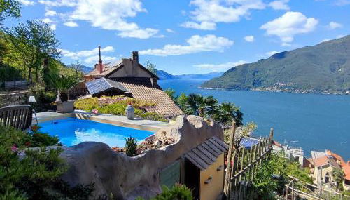 Private Eco Retreat for two Spa - Hot Tub - Design and Lake View, que tiene vistas a la montaña, dispone de alojamiento con terraza y balcón a unos 28 km de Estación de Lugano. Esta casa o chalet con vistas a la piscina y al lago también cuenta con wifi gratis.