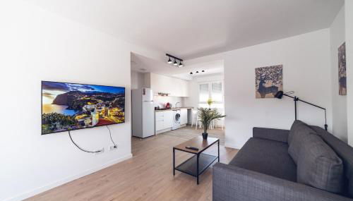 El apartamento cuenta con TV. La cocina está equipada con nevera y microondas, además de cafetera y hervidor.
