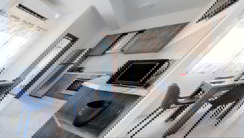 Regálate una estancia fantástica en este apartamento donde, además de aire acondicionado, tendrás una cocina perfectamente equipada con horno y microondas. Y, si te apetece tomar el aire, puedes salir a su balcón, que es de uso privado. Para los momentos de ocio, tienes una televisión con canales por cable.
