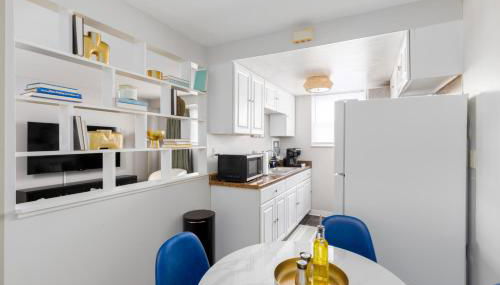 El apartamento tiene 1 dormitorio, una cocina con nevera y horno, y 1 baño con bañera, artículos de aseo gratuitos y lavadora. Hay toallas y ropa de cama en el apartamento.