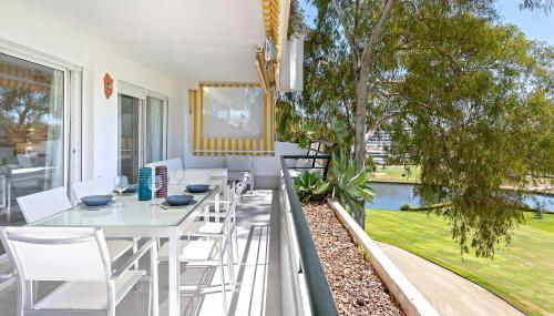 El apartamento dispone de 2 dormitorios, 2 baños, ropa de cama, toallas, TV de pantalla plana, zona de comedor, cocina totalmente equipada y terraza con vistas al jardín.