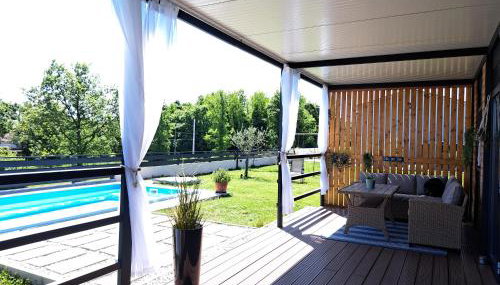 Small country house es un alojamiento con wifi gratis y vistas al jardín que se encuentra en Manjadvorci. Esta casa o chalet dispone de piscina privada, jardín y parking privado gratis.