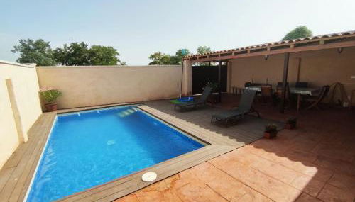 La casa o chalet cuenta con terraza y vistas a la piscina, y dispone de 3 dormitorios, una sala de estar, TV de pantalla plana, una cocina equipada con nevera y lavavajillas, y 3 baños con bidet. Hay toallas y ropa de cama en la casa o chalet.