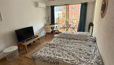 Bohemian studio in Menton close to sea with parking