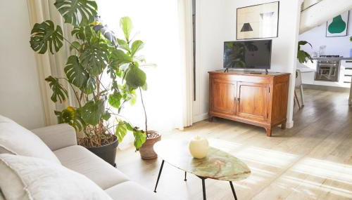 Este apartamento con aire acondicionado da a una terraza y cuenta con 1 dormitorio y cocina totalmente equipada.