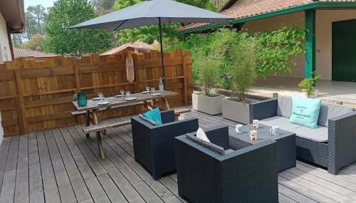 Duplex House With Large Terrace And Garden se encuentra en Moliets-et-Maa, a 2,2 km de Playa central, a 37 km de Estación de tren de Dax y a 36 km de Sainte-Marie Cathedral. Dispone de terraza, vistas a la ciudad y wifi gratis en todo el alojamiento.