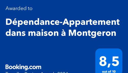 Dépendance-Appartement dans maison à Montgeron se encuentra en Montgeron, a 19 km de Gare de Lyon y a 20 km de Ópera de la Bastilla, y ofrece wifi gratis y aire acondicionado.