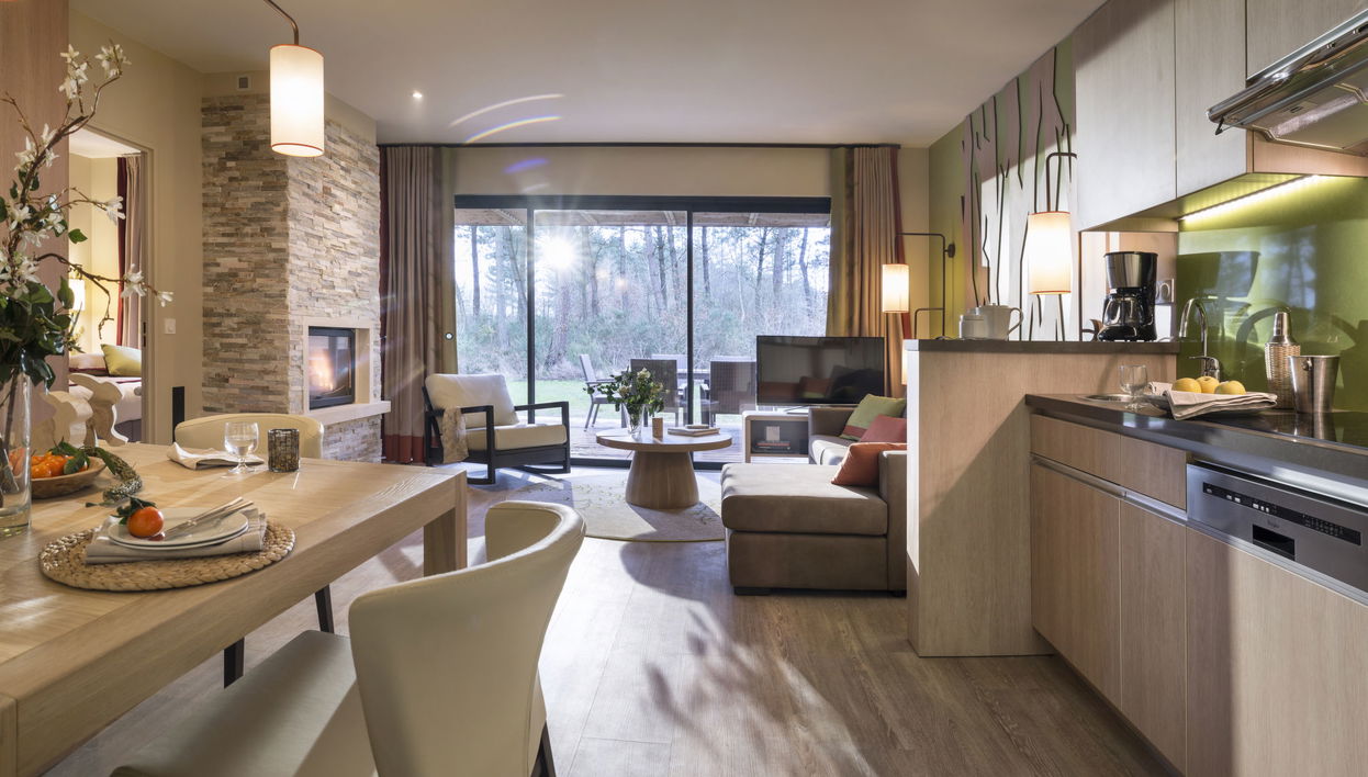"Cottage VIP", casa 2 estancias 51 m2. Con mobiliario confortable: salón-comedor con ventanal con chimenea y TV (pantalla plana). Salida a la terraza. 1 dorm. con 1 cama doble (180 cm, 210 cm de longitud), TV. Cocina abierta (lavavajillas, 4 placas de vitrocerámica, tostadora, hervidor de agua eléctrico, cafetera eléctrica, microondas/grill) con mesa de comedor. Baño, ducha, WC separado, bañera de hidromasaje, Sauna. Ningún tipo de calefacción. Suelo de madera. Terraza. Muebles de terraza. El alojamiento dispone de: caja fuerte, trona, cuna, secador de pelo. Internet (Wifi). Plaza de aparcamiento (1 coche). A tener en cuenta: apartamento para no fumadores. El alojamiento es una casa tipo ejemplo o un apartamento tipo ejemplo.