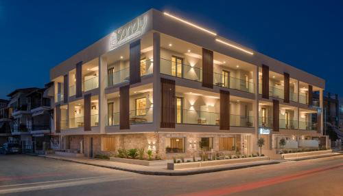 Sandy Seaside Suites está a pocos pasos de Playa de Flogita y ofrece alojamiento con restaurante, piscina de temporada al aire libre, jardín y terraza. Hay wifi gratis en todo el alojamiento.
