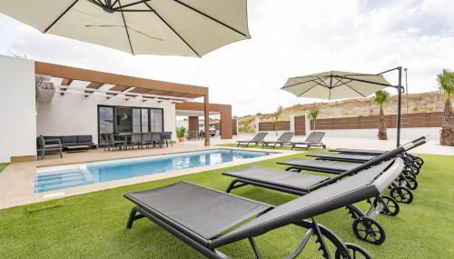 VILLA DE LUJO RIOPARK es un alojamiento con piscina al aire libre, jardín y terraza que se encuentra en Mutxamel, a 12 km de Alicante Golf, a 16 km de Estación de tren de Alicante y a 40 km de Terra Mítica. Este alojamiento ofrece ping pong.