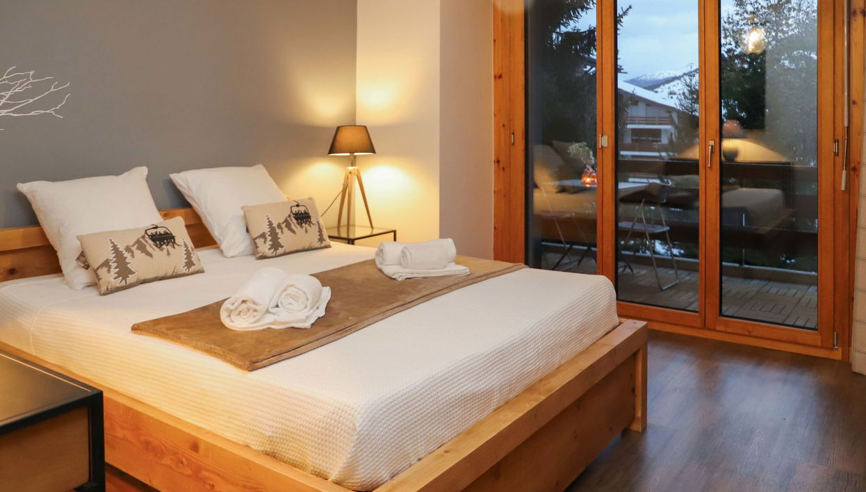"Chaedoz 24-1", apartamento de 2 estancias 70 m2 en el 2° piso. Vivienda adecuada para 2 adultos + 2 niños. Espacioso, con mobiliario confortable y moderno: salón-comedor con chimenea (sólo con función decorativa), TV cable y DVD. 1 dorm. con 1 cama de matrimonio (160 cm, 200 cm de longitud). Salida al balcón, orientación este. Rincón-dormitorio con 1 x 2 literas (70 cm, 180 cm de longitud). Cocina abierta (horno, lavavajillas, 4 placas de vitrocerámica, tostadora, hervidor de agua eléctrico, cafetera eléctrica, horno Raclette, set de Fondue (chinoise, queso)). Salida al balcón, orientación oeste. Baño/WC. Balcón, orientación oeste balcón, orientación este. Muebles de balcón. Vista panorámica bonita a las montañas. El alojamiento dispone de: trona, cuna, secador de pelo. Internet (Wifi, gratis). Plaza de aparcamiento (cubierto). A tener en cuenta: apartamento para no fumadores. En lugar de un dormitorio cerrado, algunos espacios para dormir están situados en una zona diáfana (galería, alcoba, etc.).