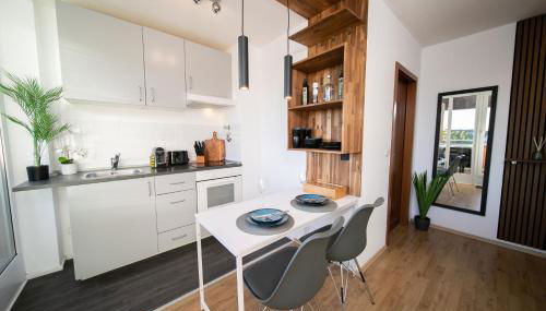 Studio WHITE - Central - Balcony - Fair - Kitchen está en Neuss, a 8,9 km de Torre del Rin, a 10 km de Paseo de la ribera del Rin y a 11 km de Plaza del Castillo. Hay wifi gratis en todo el alojamiento y parking privado en el propio alojamiento.