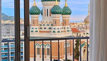 3P 72m2 Climatisé Vue exceptionnelle Cathédrale St Nicolas et Mer, que tiene un balcón con vistas a la ciudad, salón de uso común y terraza, se encuentra en Niza, cerca de Plage du Forum y a 500 metros de Catedral de San Nicolás. Está a 15 min a pie de Estación de tren de Nice - Ville y dispone de wifi gratis, además de cocina compartida.