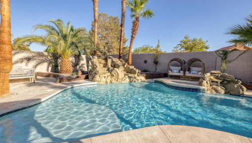 Oasis In The Desert W Heated Pool Fully Renovated, que cuenta con piscina al aire libre, jardín y bar, ofrece alojamiento en Las Vegas con wifi gratis y vistas a la montaña.